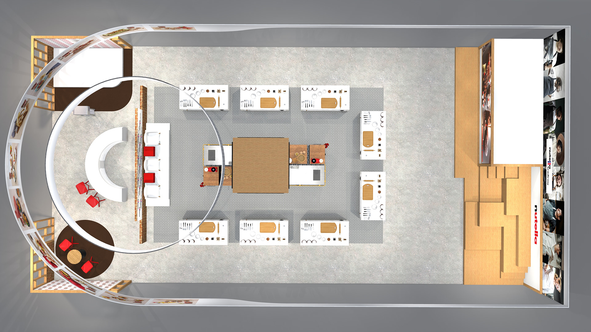 Organisation en 2 temps : espace central en mode EXPOSITION ou en mode COMPÉTITION.